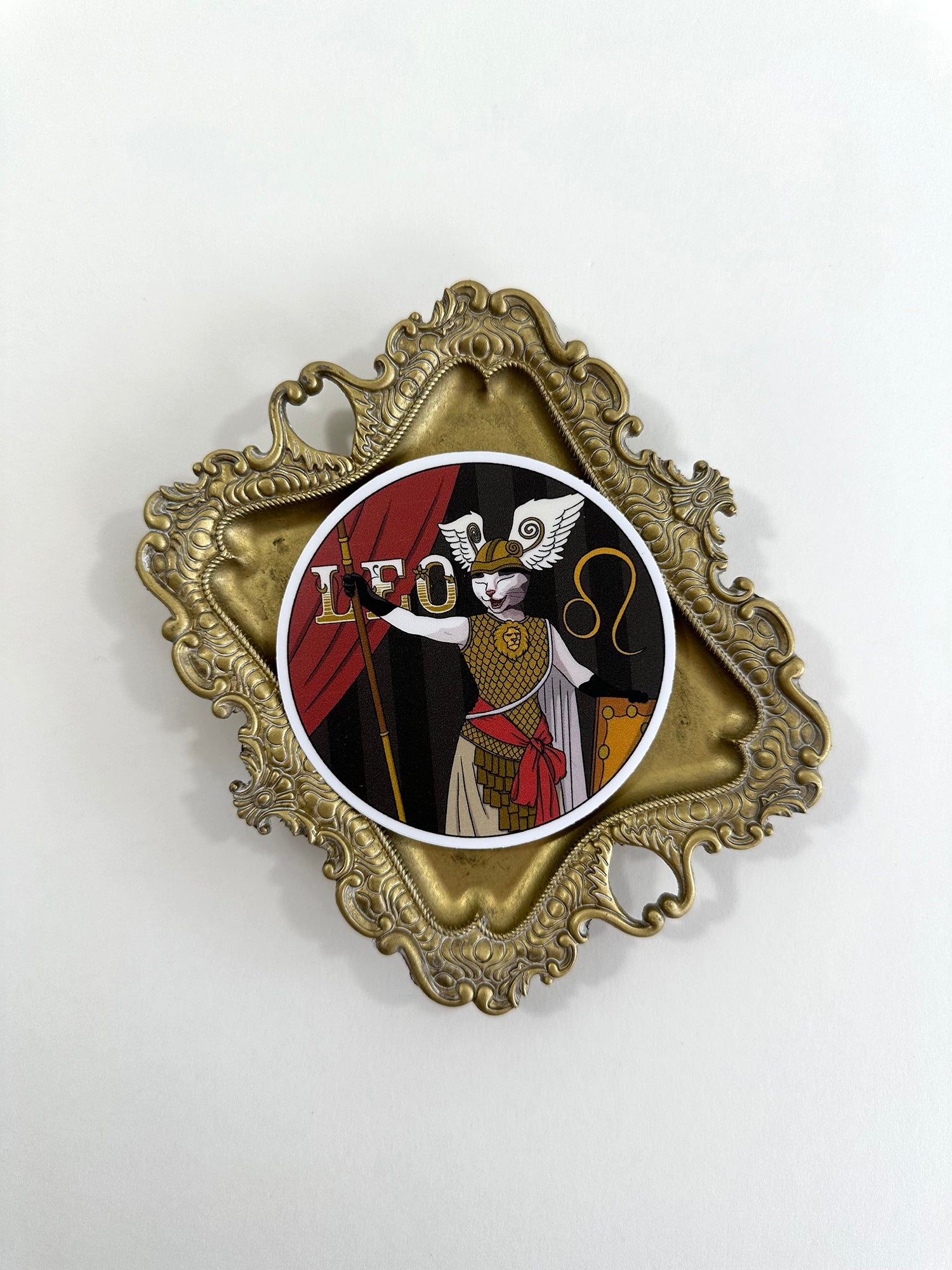 High-quality matte, vinyl, dye-cut sticker, are suitable for indoors or outdoors (cat-pun intended). They are a great addition to a water bottle, car bumper, phone case, guitar case, or any other place stickers are stuck. This design is Leo (July 23 - August 22) as an Edwardian cat opurra singer.