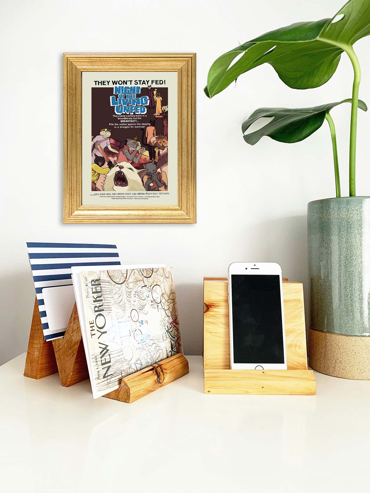 Design is "Night of the Living Unfed." This cat themed parody of the classic horror film "Night of the Living Dead" is sure to delight any fan of cats and old movies. It has undergone catification, with every name a hilarious cat pun.