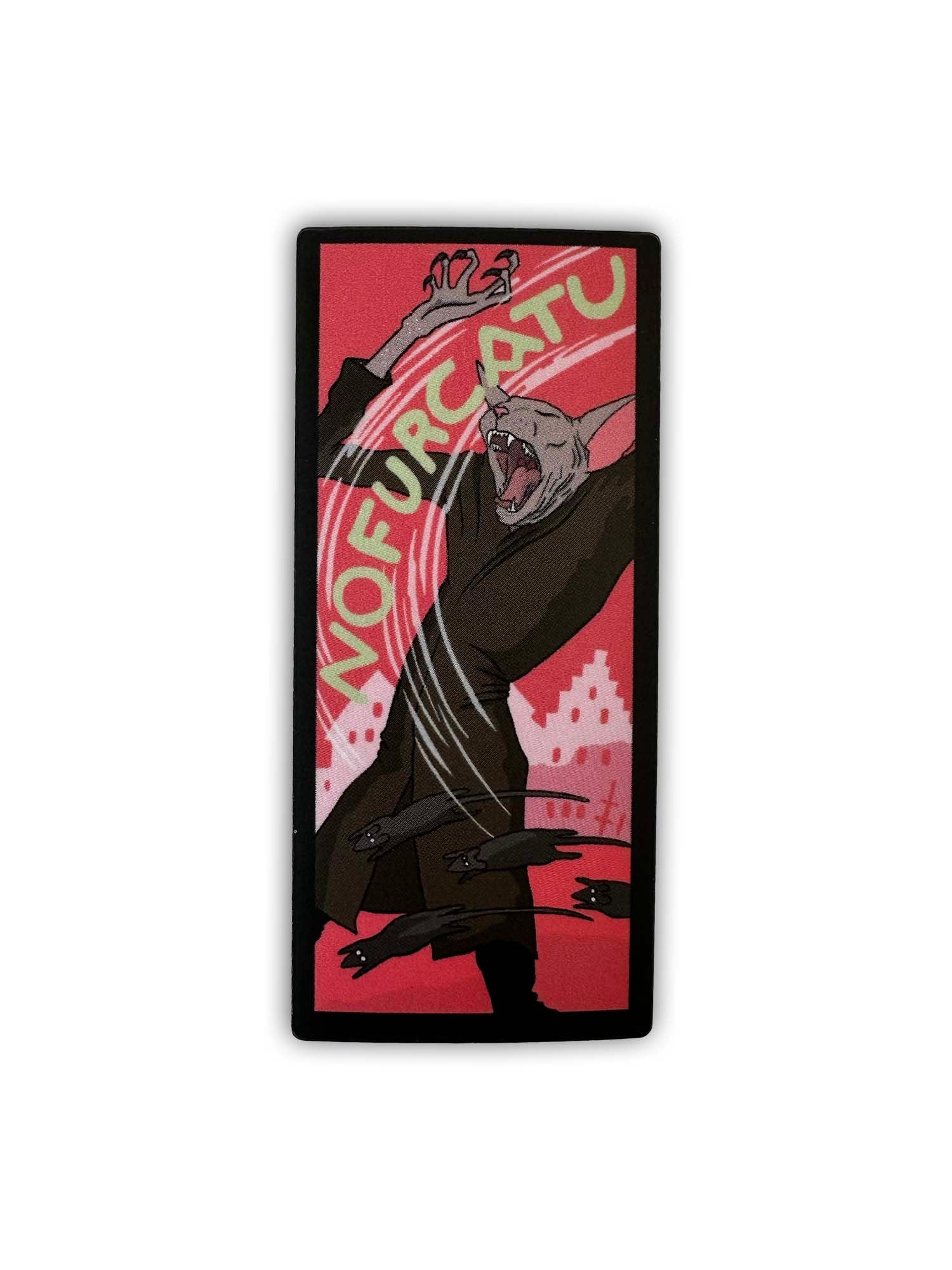 High-quality matte, vinyl, dye-cut sticker, are suitable for indoors or outdoors (cat-pun intended). They are a great addition to a water bottle, car bumper, phone case, guitar case, or any other place stickers are stuck. This design is Nofurcatu, the Vampurr.