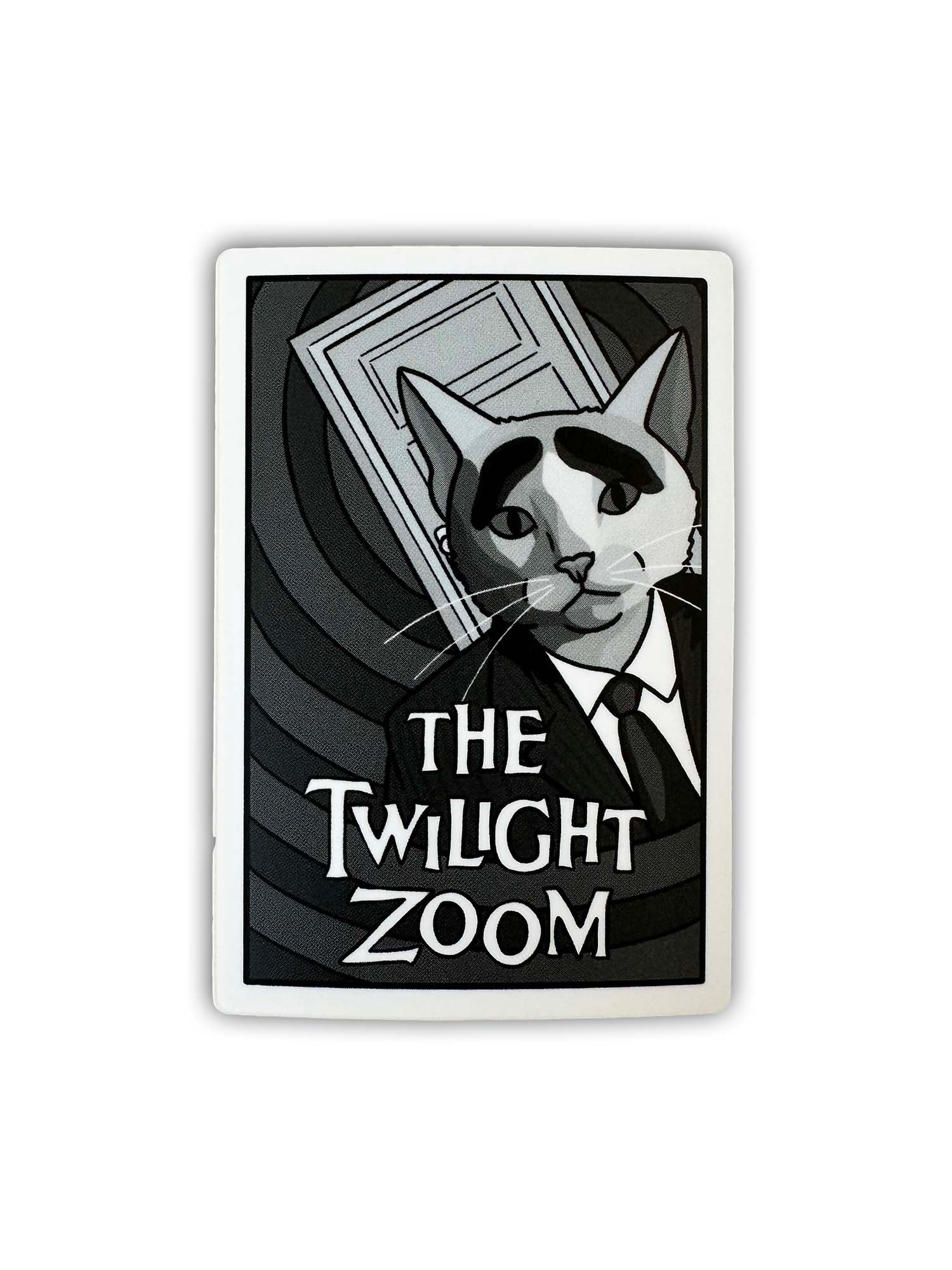 High-quality matte, vinyl, dye-cut sticker, are suitable for indoors or outdoors (cat-pun intended). They are a great addition to a water bottle, car bumper, phone case, guitar case, or any other place stickers are stuck. This design is Cod Stirling's The Twilight Zoom (na na na na).